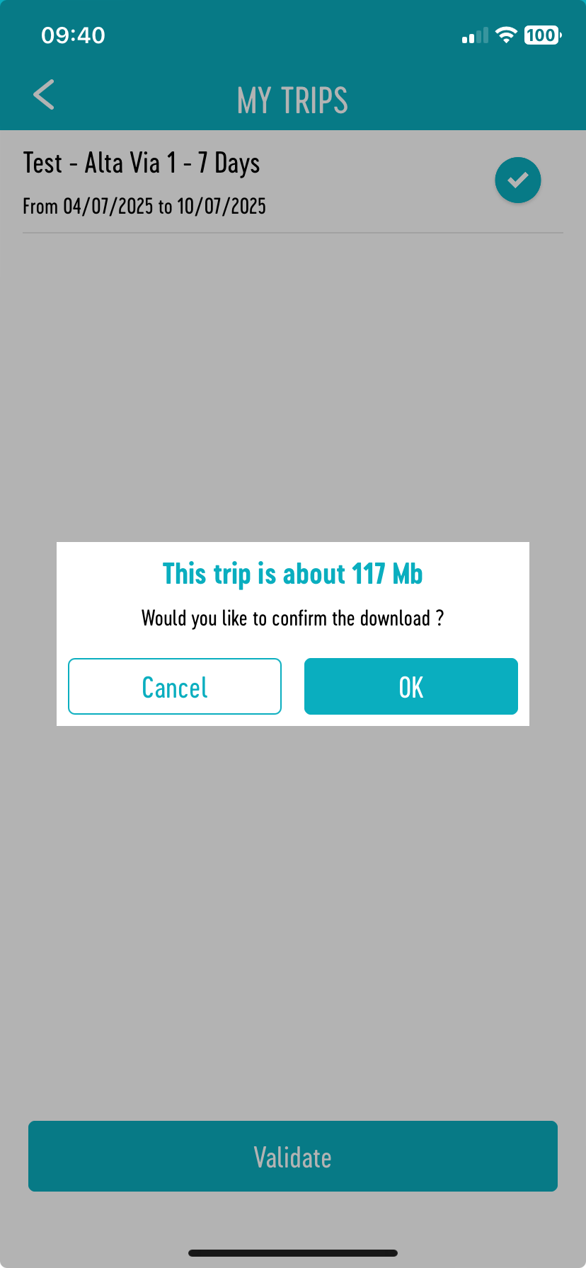 Step 3: Select and validate your trip. You will need to download it.