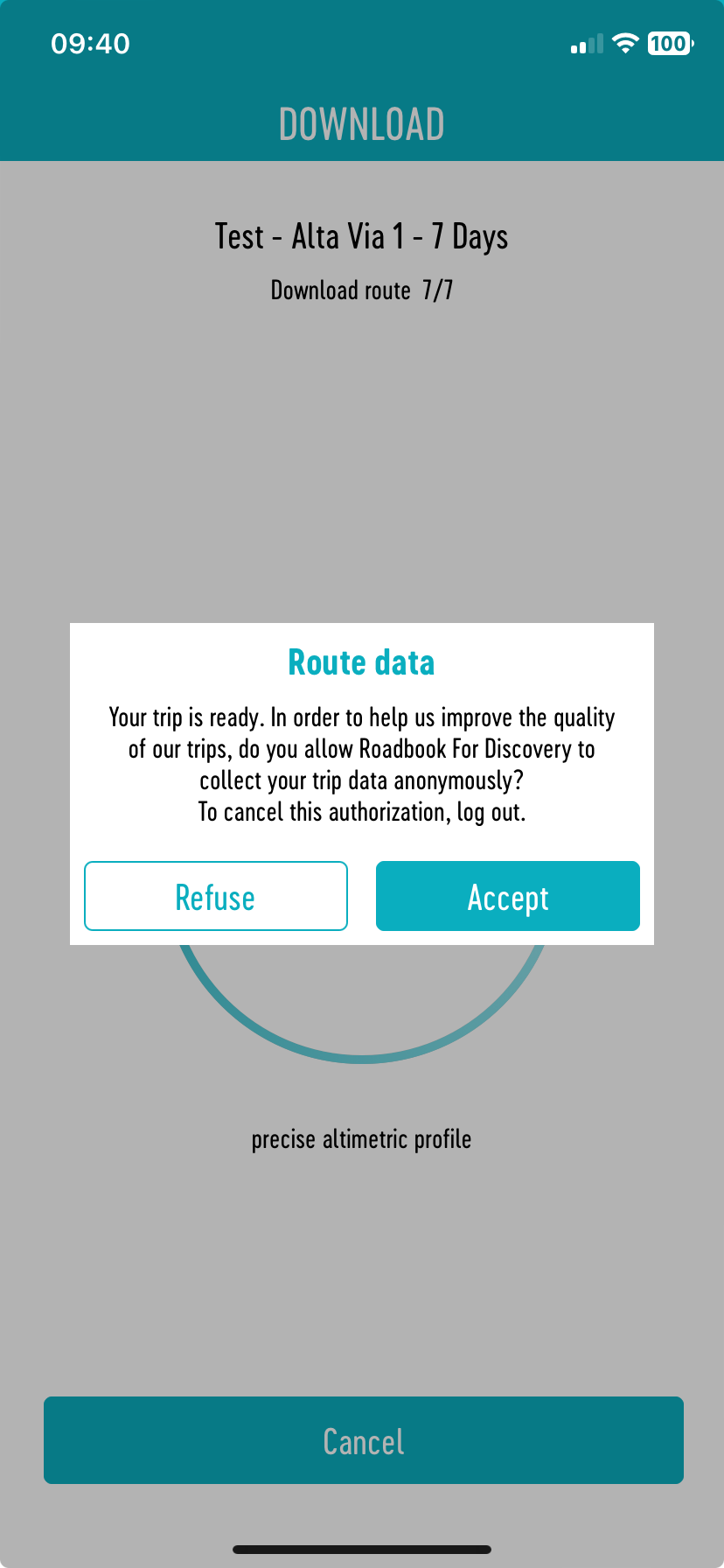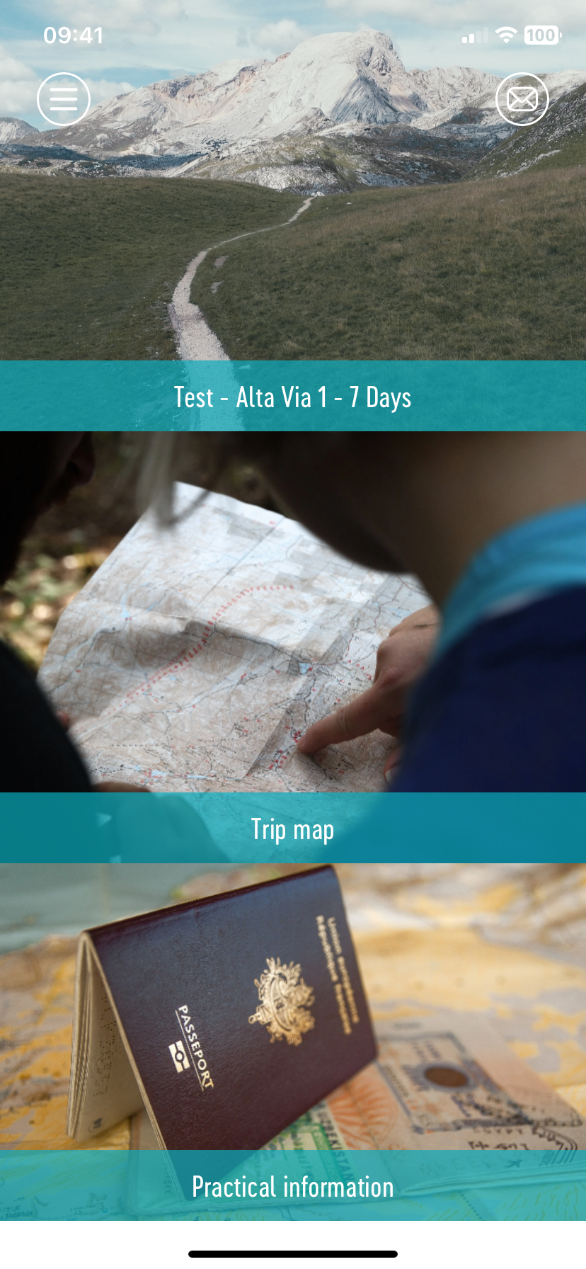 Here you will find another way to access your trip, the map, practical information. You will also find your application settings and the log out button. Please note if you log out you will loose your eRoadbook and have to redownload from the beginning. There is a certain amount of downloads allocated per itinerary so please make sure to stay logged in.