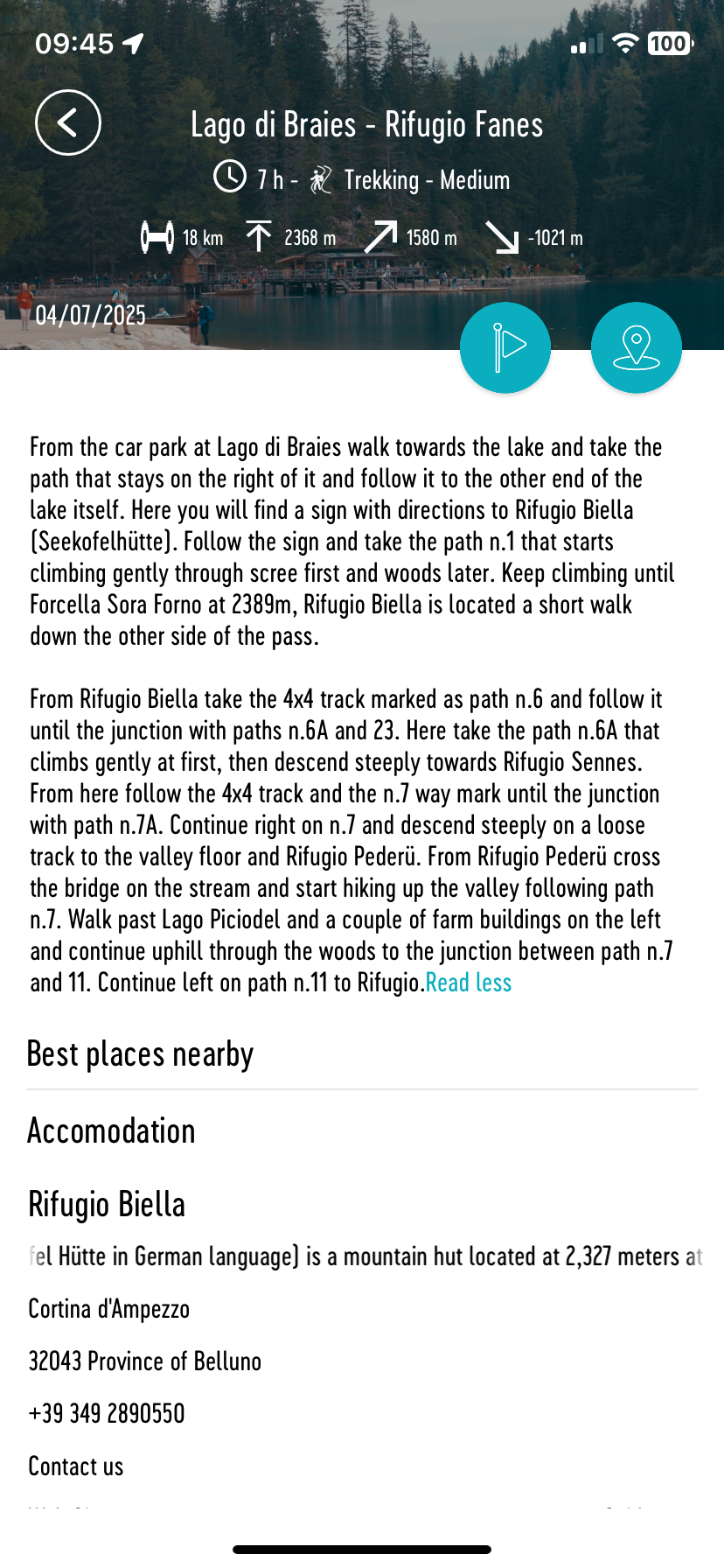 - By clicking on the track you will be able to see all of the information for your days hike. Along the top underneath you can see the statistics such as the ascent, descent and daily trekking times. You will be able to see the detailed route description with the relevant path numbers. You can see the timetables for these shortcuts via the shortcuts and logistics page mentioned above. All of the ‘Points of Interests’ are listed below with the refuges you will pass and bus stops/gondola stations.